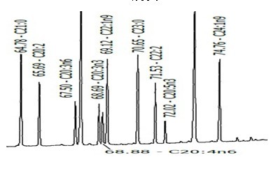 按許多文獻中報道和現(xiàn)行內(nèi)部標準進行37種脂肪酸甲酯檢測時,其中C22:1n9、C20:4n6和C20:3n3實現(xiàn)完全分離是關鍵。在部分檢驗案例和客戶反饋的信息,即使用色譜柱長度為100米的知名品牌色譜柱,上述三個組份會發(fā)生重疊,難以分開。
