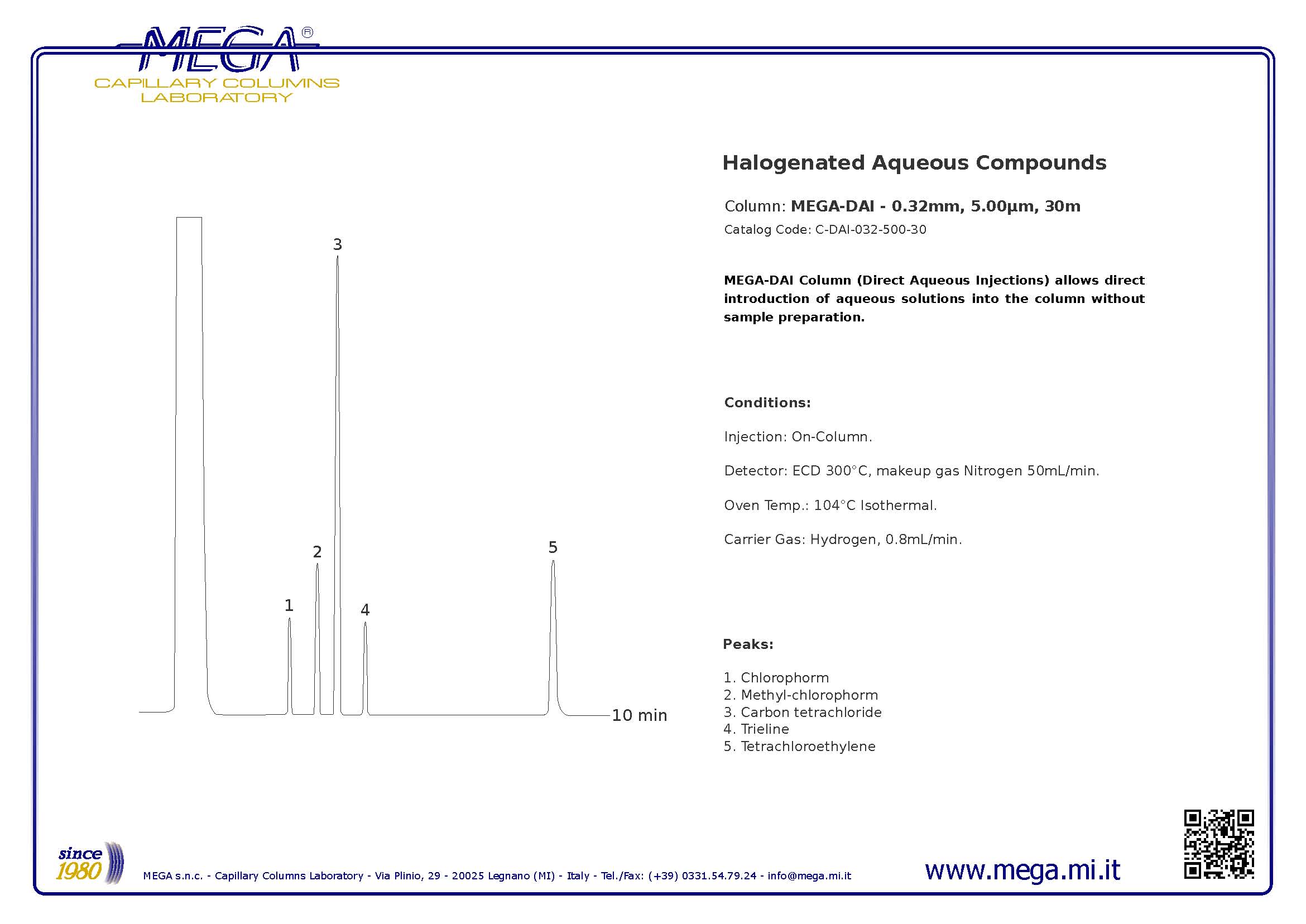 MEGA-DAI氣相色譜石英毛細(xì)管柱固定相經(jīng)過特殊的修飾和處理,可以將檢測(cè)的水樣直接在氣相色譜儀進(jìn)樣,無需進(jìn)行任何前處理,保證檢測(cè)上述組份時(shí)數(shù)據(jù)重現(xiàn)的一致性。