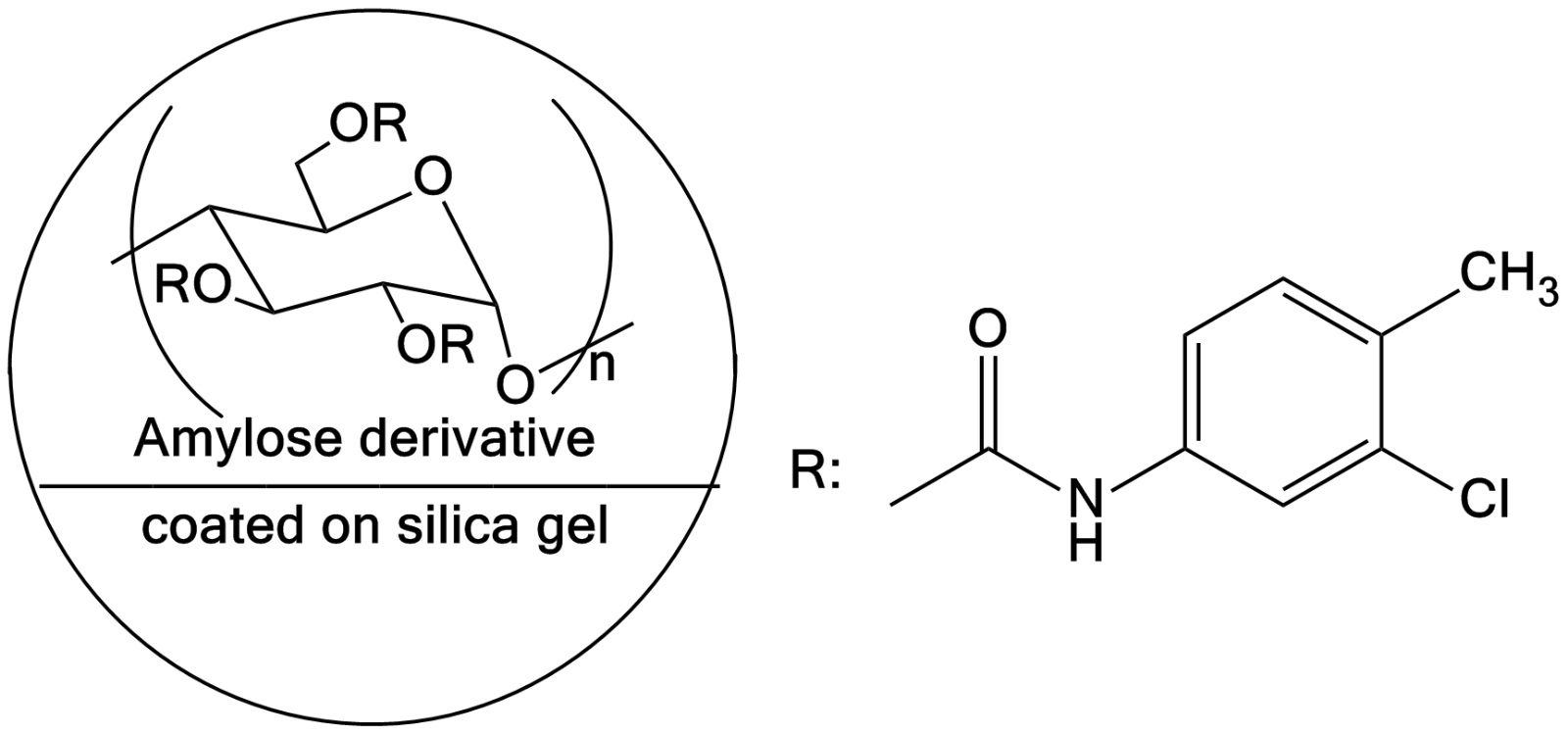 硅膠表面涂敷有直鏈淀粉(3-氯-4-甲基苯基氨基甲酸酯) |